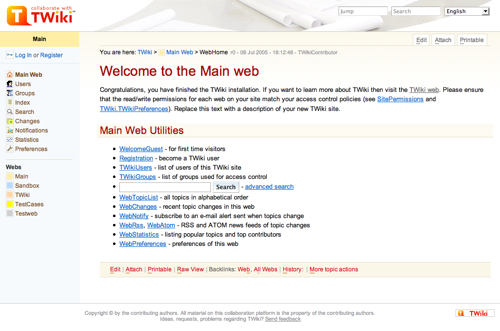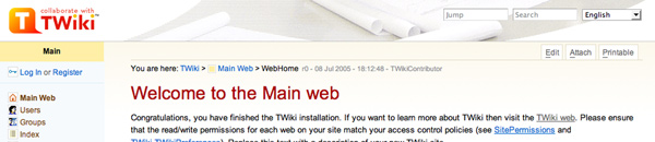 - Test if installed: /twiki/bin/view/TWiki/PatternSkin?skin=pattern
