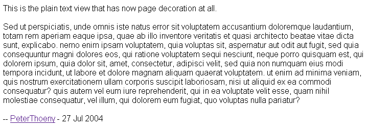 Appraisal: | http://TWiki.org/cgi-bin/view/Plugins/PlainSkinAppraisal |
